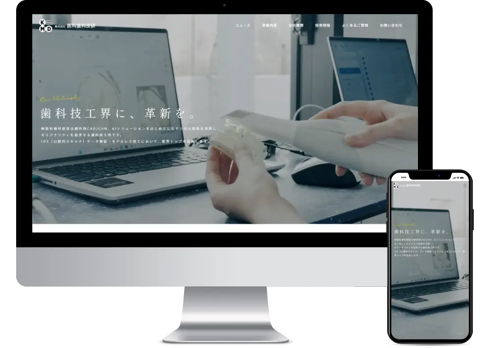- 歯科用CADやAIソリューションなど、デジタル技術を活用し歯科技工界に革新をもたらす株式会社 医科歯科技研様のコーポレートサイトリニューアルを企画・制作させていただきました。