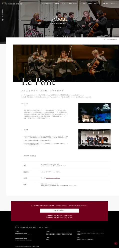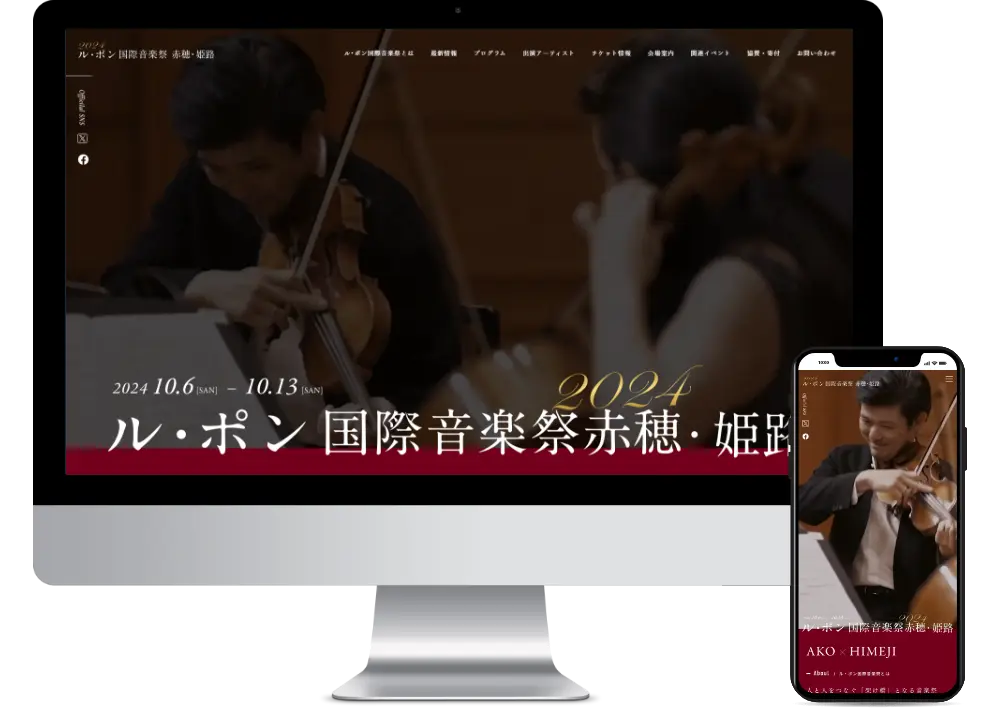 - 赤穂・姫路を舞台に、樫本大進音楽監督をはじめ世界的なアーティストが出演する「ル・ポン国際音楽祭2024赤穂・姫路」の公式サイトリニューアルを企画・制作させていただきました。