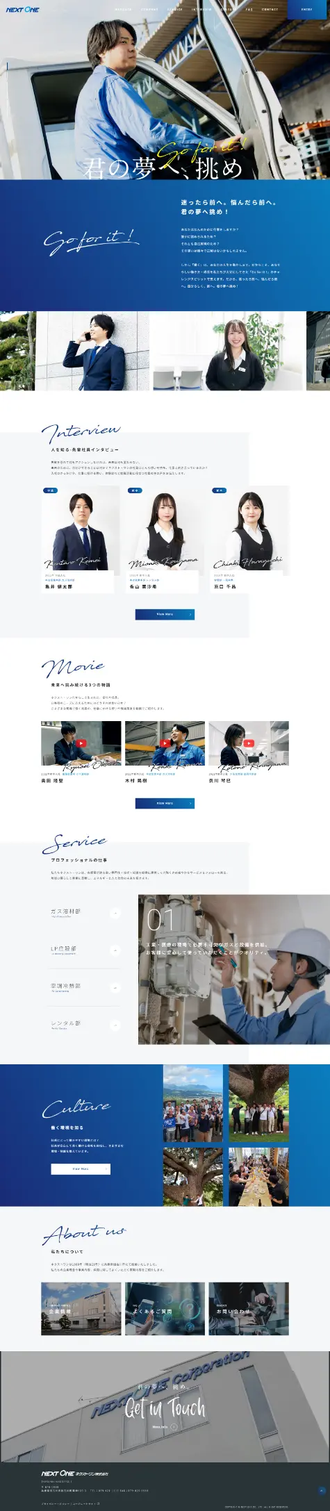 - 兵庫県を中心に関東、中国、四国地方にも展開する、各種高圧ガスや住宅設備機器などを販売するネクスト・ワン株式会社様の採用特設サイトを企画・制作させていただきました。
